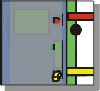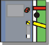 Phase 2 Die Sektorenblende deckt das Bildfenster vollständig ab. Erst jetzt darf der Sperrgreifer zurückfahren und der Transportgreifer (gelb) in die Perforation eintauchen. |
