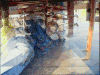 Umlaufblende und Movement Der Film wird während der Belichtung transportiert. Dadurch wird der obere oder untere Bildbereich kürzer belichtet, was die im Bild sichtbare Abschattung zur Folge hat. Bei extrem starker Dejustage können in einzelnen Bildpartien auch Bewegungsunschärfen sichtbar sein. |